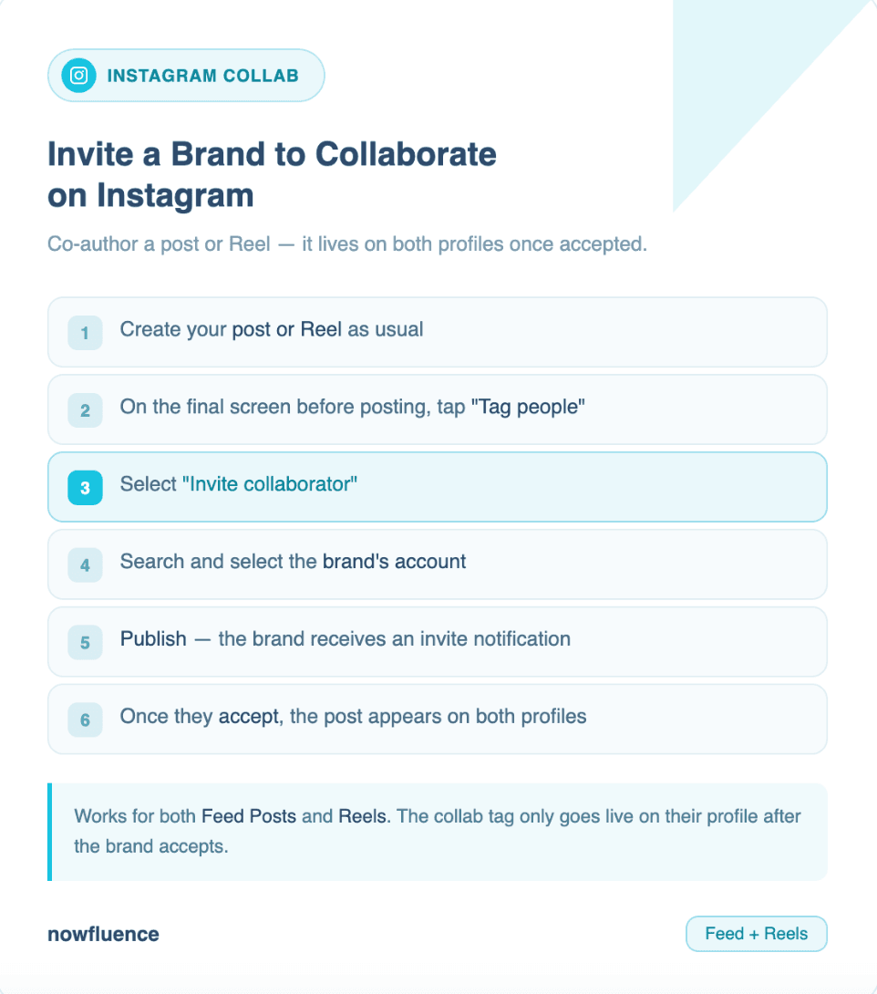 This feature helps both you and the brand share reach, engagement, and visibility from a single post.
