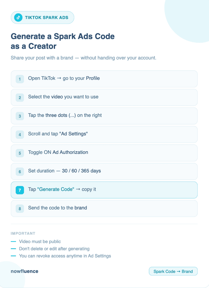 How to Generate a Spark Ads Code on TikTok as a Creator